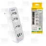 Adaptador com 3 tomadas de 3 pinos, 2 USB e 1 Type-C.