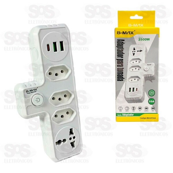 Adaptador 3 Tomadas Com USB e Type C B-Max BM-8704A