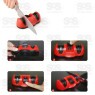 Para utilizar, apoie o afiador em uma superfície plana e baixe a trava para fixá-la, passe levemente as lâminas cortantes no "V" do amolador, com 3 a 4 movimentos para trás, e com pouco tempo estarão prontos para o corte perfeito.