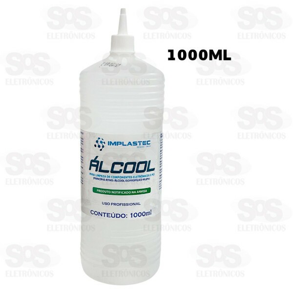 Álcool Isopropílico 99,8% 1000ML Implastec Ideal para limpezas eficientes em componentes eletrônicos e PCI. Remove impurezas sem deixar resíduos. Possui grande capacidade de solvência, ação desengordurante e alto grau de pureza. Deve ser utilizado com o equipamento desenergizado. Validade: 36 meses desde que seja respeitado as orientações de armazenamento. Quantidade: 1000ml Marca: Implastec