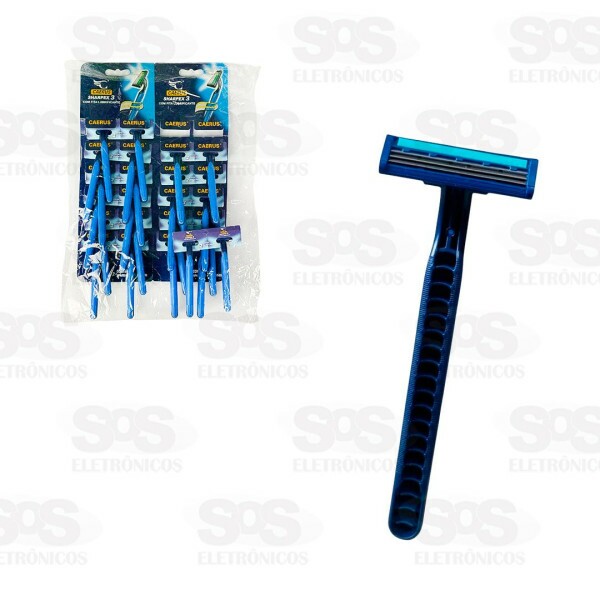 Aparelho De Barbear Descartável Com 3 Lâminas Azul Cartela Com 24 Unidades