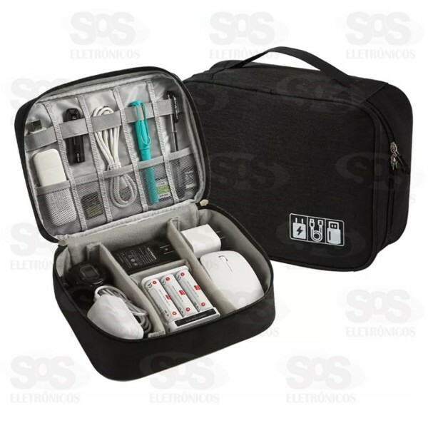 Compacto e fácil de transportar, mas espaçoso o suficiente para acomodar uma variedade de itens, como cabos, pendrives e fontes.