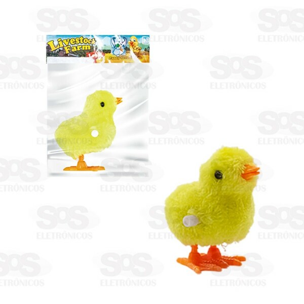 Pintinho amarelinho de pelúcia, ao dar corda ele pula repetidamente!