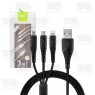 Cabo de dados com 3 interfaces: Type-C, Micro V8 e Lightning