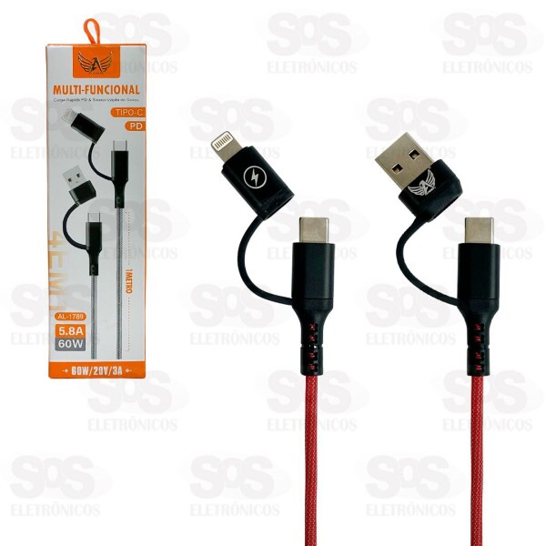 Cabo De Dados 4 Em 1 60W 5.8A 1 Metro Altomex AL-1789