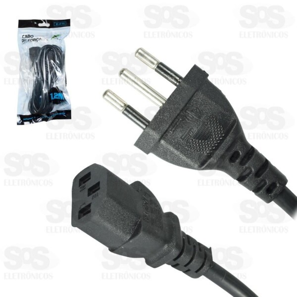 Cabo de força com 3 pinos para fonte de notebook, televisão, monitores e eletrônicos em geral que utilizem o mesmo padrão (Tripolar).