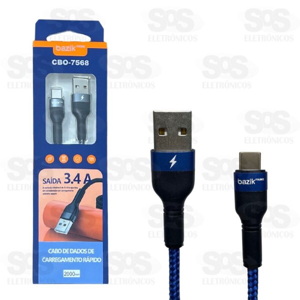 Cabo De Nylon Type C 2 Metros 3.4A Bazik Prime CBO-7568