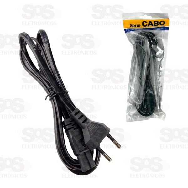 Cabo de força bipolar tipo "8" para ligar Fonte Externa de Notebook, Impressora, Calculadora, Xbox e Playstation (PS1, PS2, PS3, PS4) DVD, TV, Rádio, Gravador, Microsystem e diversos outros aparelhos eletrônicos.