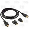 Cabo HDMI 1080P Com Adaptador Mini e Micro 1.5 Metros 3D1.4V