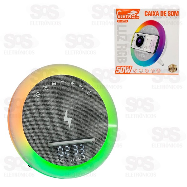 Caixa De Som 50W Com Luminária e Carregador Por Indução Eletromex EL-1078