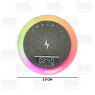 Essa caixa de som possui luzes de LED para luminária, carregador por indução para celular, relógio e função despertador.
