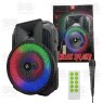 Caixa com LED RGB com controle e microfone, perfeita para karaokê!