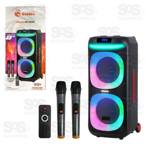 Caixa De Som Potente Com 2 Microfones e Controle GP-1908