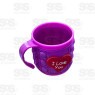 Emborrachada e com alça para não machucar e encaixar perfeitamente na mão de crianças.