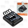 Este carregador possui 4 cabos para carregamento sendo compatíveis com IOS, Tipo C, Micro V8 e cabo adaptador USB, podendo ser conectado a uma fonte de carregamento, para carregar o power bank.