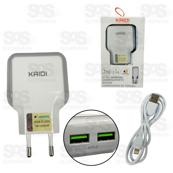Carregador 2 USB 2.4A Com Cabo Lightning Kaidi KD-605A