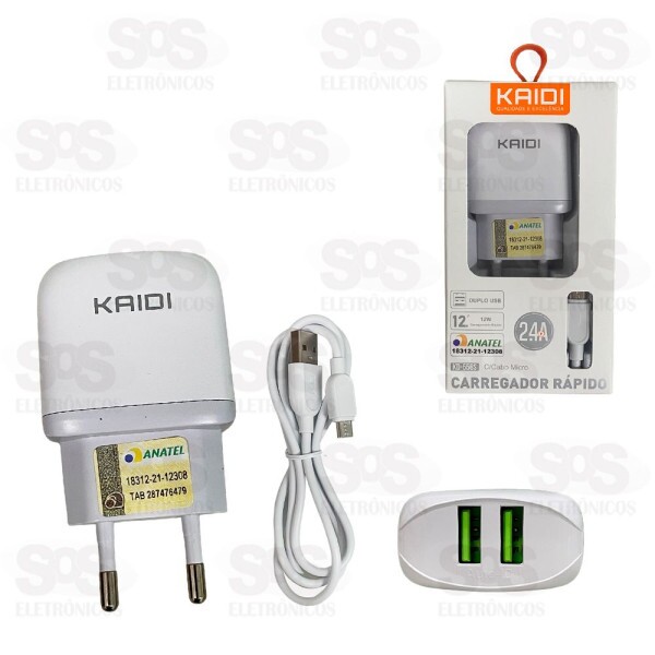 Carregador 2 USB 2.4A Com Cabo Micro USB V8 Kaidi KD-556S