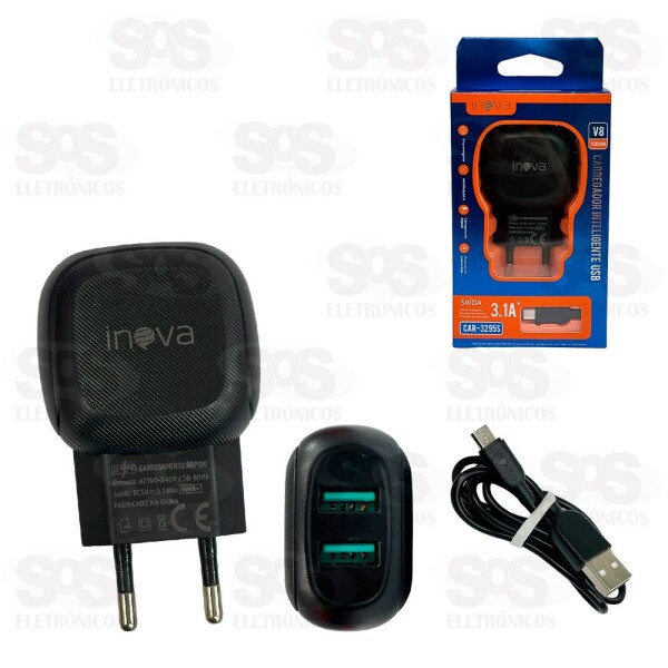 Carregador 2 USB 3.1A Com Cabo Micro USB V8 Inova CAR-3295S