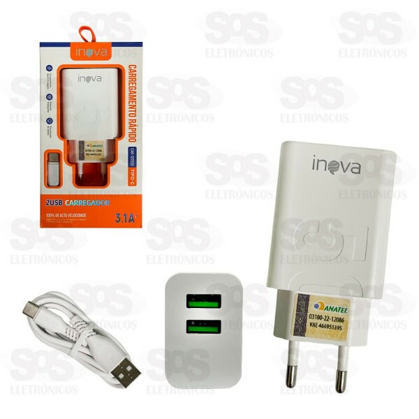 Carregador 2 USB 3.1A Com Cabo Type C Inova CAR-12722C