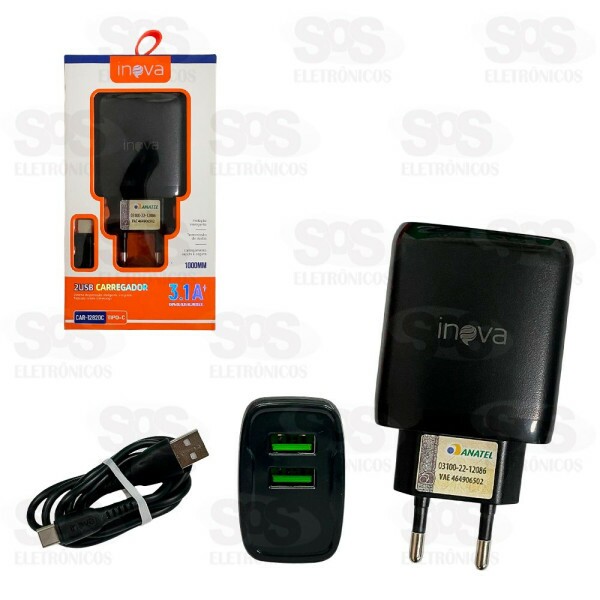 Carregador 2 USB 3.1A Com Cabo Type C Inova CAR-12820C