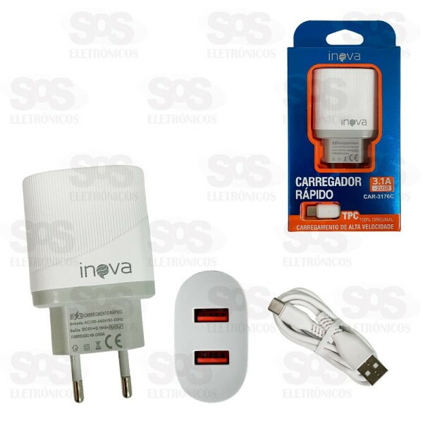 Carregador 2 USB 3.1A Com Cabo Type C Inova CAR-3176C