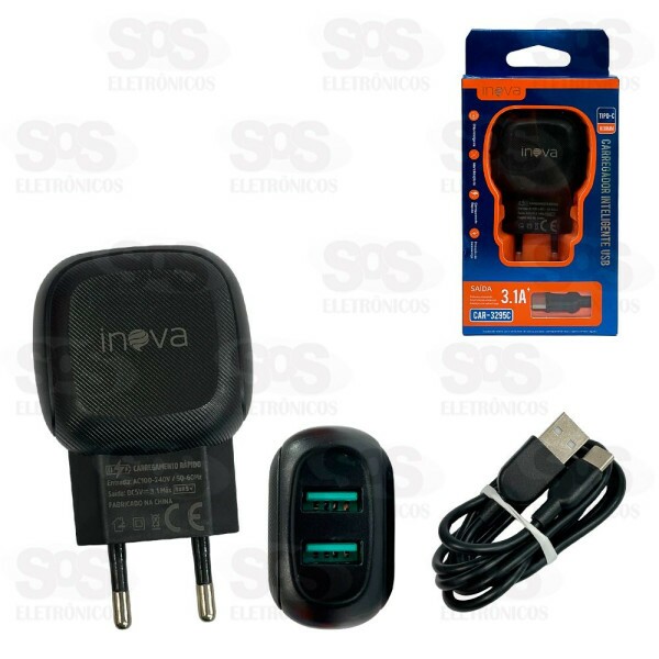 Carregador 2 USB 3.1A Com Cabo Type C Inova CAR-3295C
