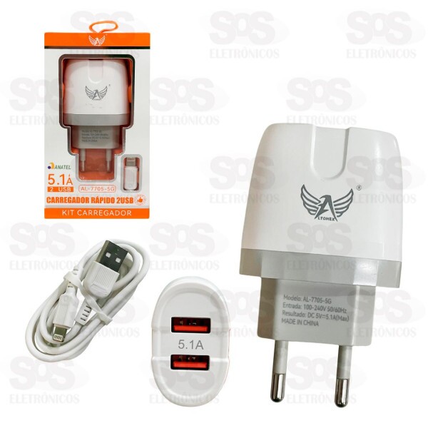 Carregador 2 USB 5.1A Com Cabo Lightning Altomex AL-7705-5G