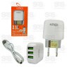 Carregador 3 USB 3.1A Com Cabo Micro USB V8 Kaidi KD-557S