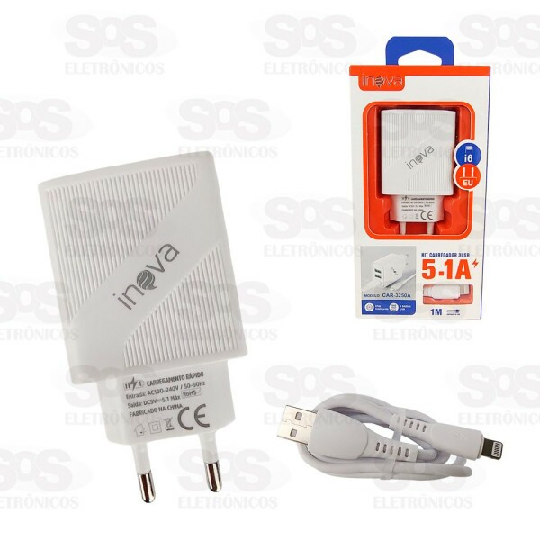 Carregador 3 USB 5.1A Com Cabo Lightning Inova CAR-3250A