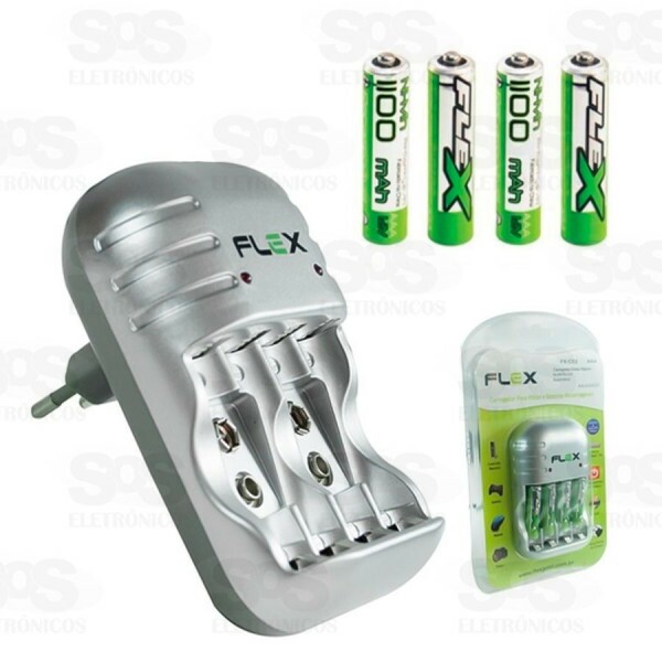 Acompanha 4 pilhas recarregáveis AAA 1100mAh