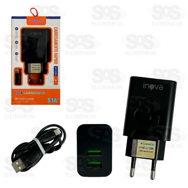 Carregador 2 USB 3.1A Com Cabo Iphone Inova CAR-12722A