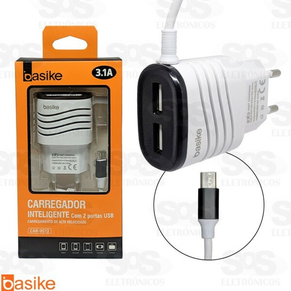 Carregador Micro USB V8 3.1A 2 USB BASIKE CAR-9012
