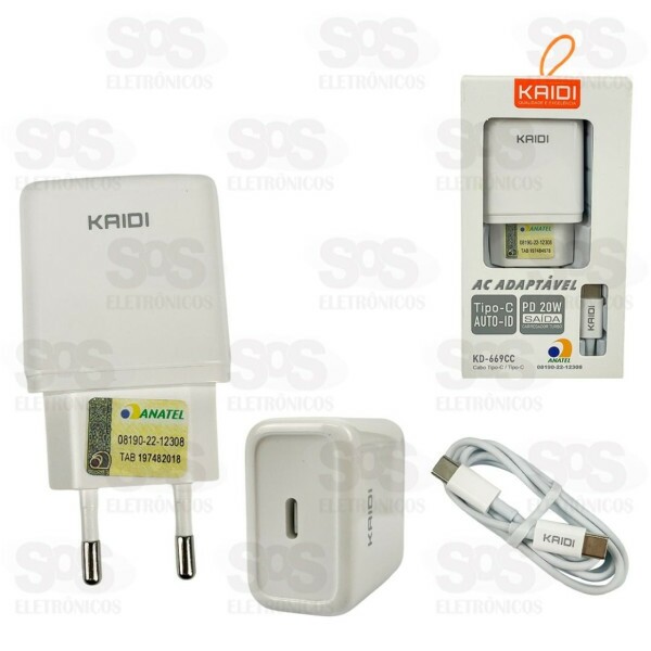 Carregador USB 3.0 + PD 20W Com Cabo Type C Kaidi KD-670CC