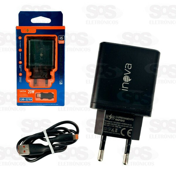 Carregador Rápido 20W Com Cabo Lightning Inova CAR-3278A