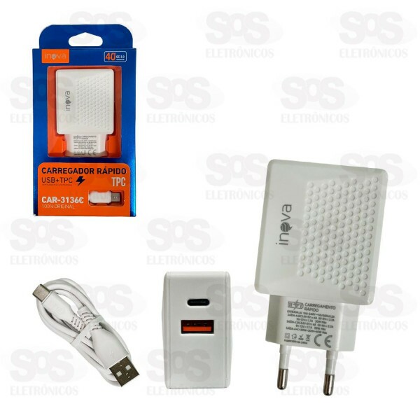 Carregador Rápido 40W Com Cabo Type C Inova CAR-3136C