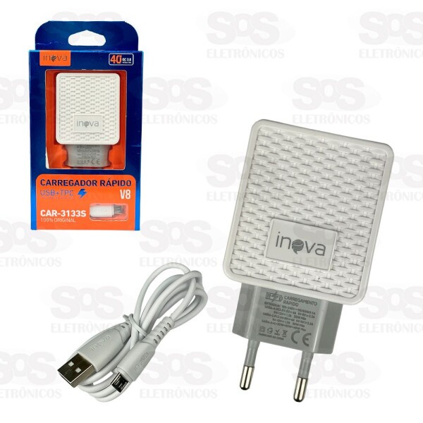 Carregador Super Rápido 40W Com Cabo Micro USB V8 Inova CAR-3133S