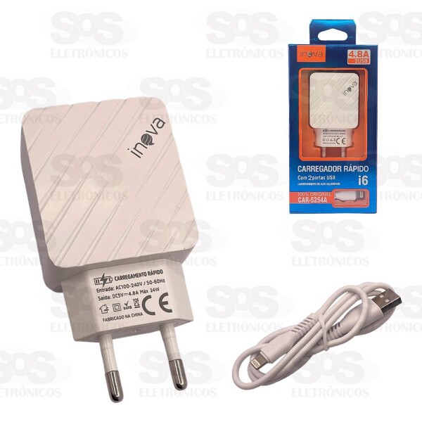 Carregador Rápido 4.8A Iphone 2 Portas USB Inova CAR-5254A