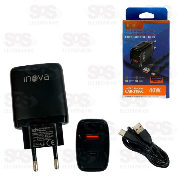 Carregador USB+PD 40W Com Cabo Type C Inova CAR-3186C