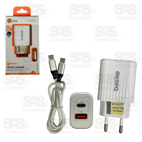 Carregador Duplo USB+PD 25W Com Cabo Type C Basike CAR-3164CC