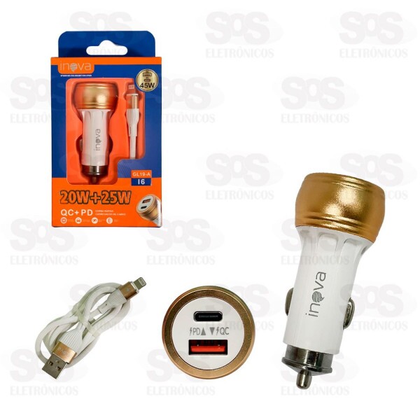 Carregador Veicular 45W Cabo Iphone Inova GL19-A