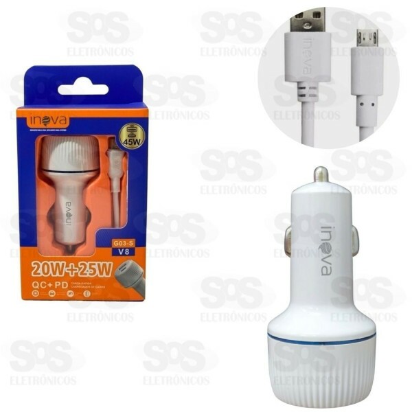 Carregador Veicular 1 USB 20W +1 Type c 25W Com Cabo Micro USB V8 Inova G03-V8