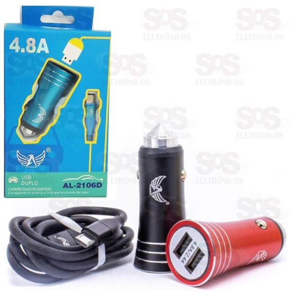 O Carregador Veicular AL-2105D da Altomex é super versátil. Vem com 2 saídas USB e permite carregar até dois aparelhos ao mesmo tempo.