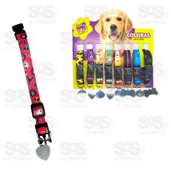 Coleira Seda Com Plaquinha 8 Unidades Estampas Variadas Pet Toys 3060