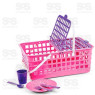 Com alças para carregar e tampa para não cair objetos de dentro.