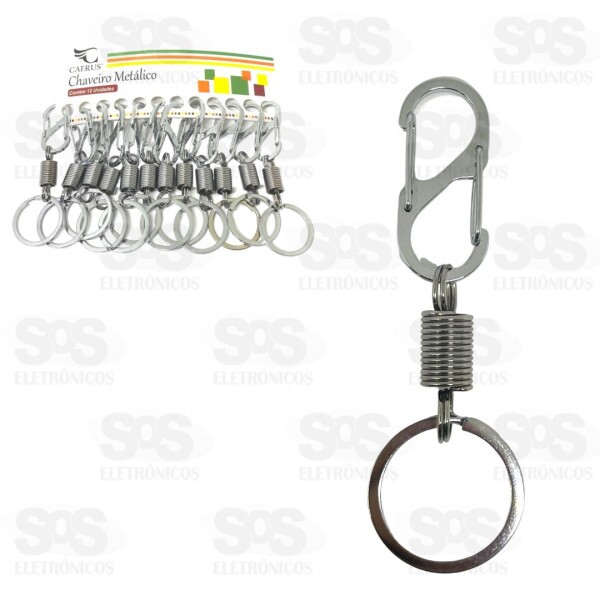 Chaveiro Mola Metálico Com Argola Dupla 12 Unidades Caerus CRS-1058