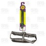 Mosquetão, argola e meia argola reforçada e fivela em aço niquelado.