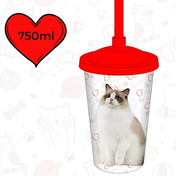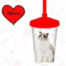 Copo Plástico Com Canudo 750ML Cat Ragdoll 0181A