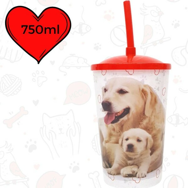 Copo Plástico Com Canudo 750ML Dog Golden 0170A