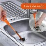 Fácil de usar, não precisa remover ralos, basta inserir o desentupidor e girar para que seus pequenos ganchos possam recolher todos os pelos e cabelos que causam o entupimento, de forma higiênica e prática.