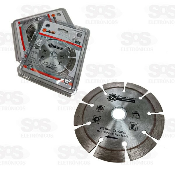 • Disco diamantado segmentado • Proporciona cortes com menor atrito, pois as gargantas eliminam o contato contínuo entre abanda de corte e o material, ajudando a refrigerar ambos • Pode ser usado para corte a seco sem risco de superaquecimento • Rotação em sentido horário • Corte seco ou refrigerado • Especificações Técnicas: - Velocidade máxima em RPM: 13.600rpm - Diâmetro do disco: 110 mm - 1.8 - Diâmetro do furo central: 20 mm